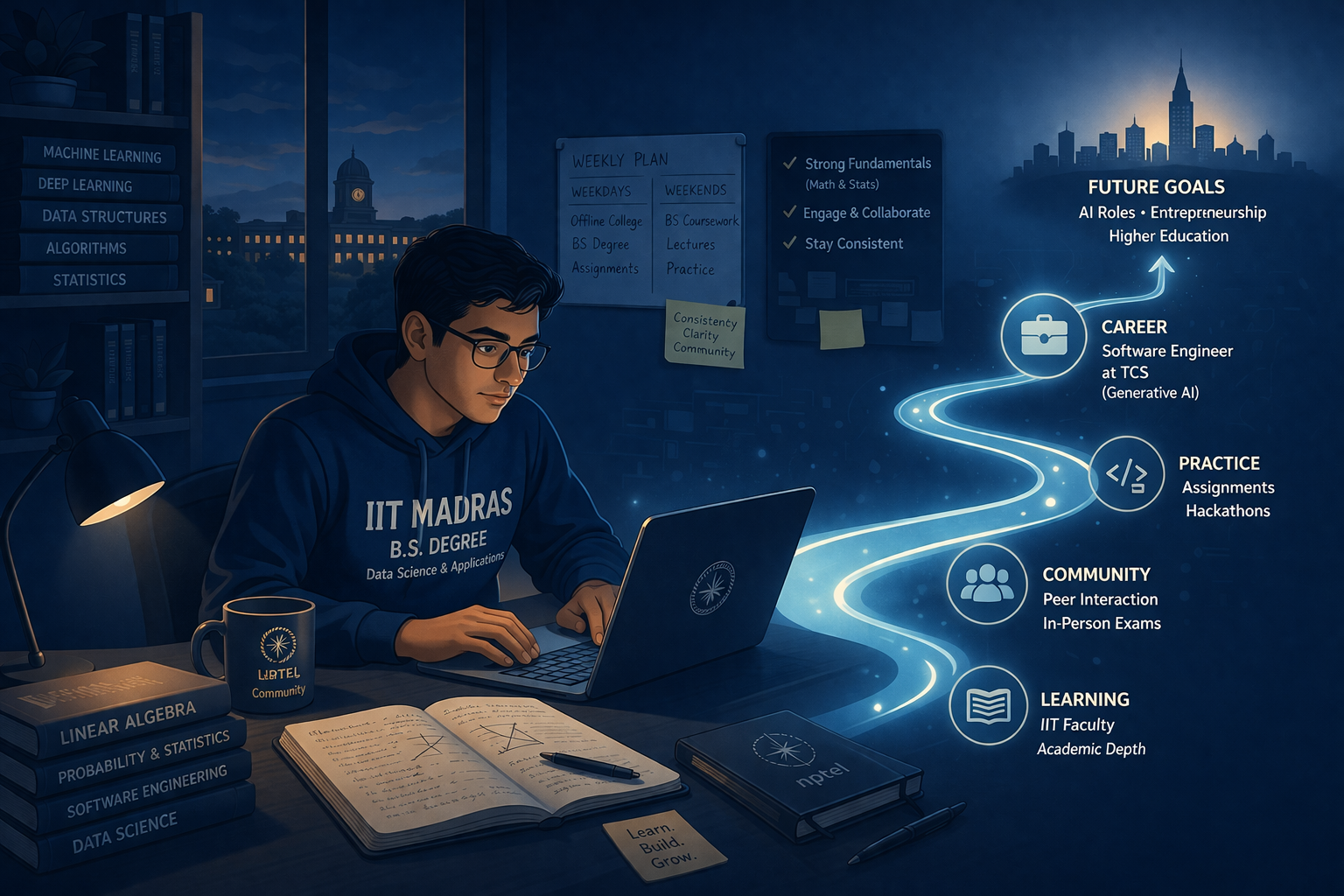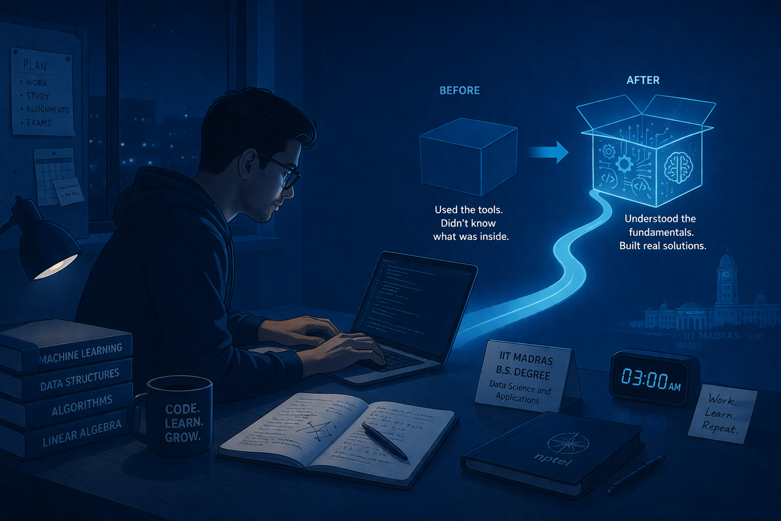 When Aniket Kalra was pursuing the IIT Madras BS Degree in Data Science and Applications, there were nights when he would look up from his laptop and it would be 3 AM, and he had to be at the office in a few hours. He’d been a working professional at a defence organisation for years – a robotics engineer who knew his field well enough to get the job done. But something had been nagging him – he was using tools he didn’t fully understand, operating a box without knowing what was inside it. So he enrolled in the degree, and then he coded till 3 AM on most days, and then he went to work. Because for Aniket, understanding was worth the sleep deprivation.
