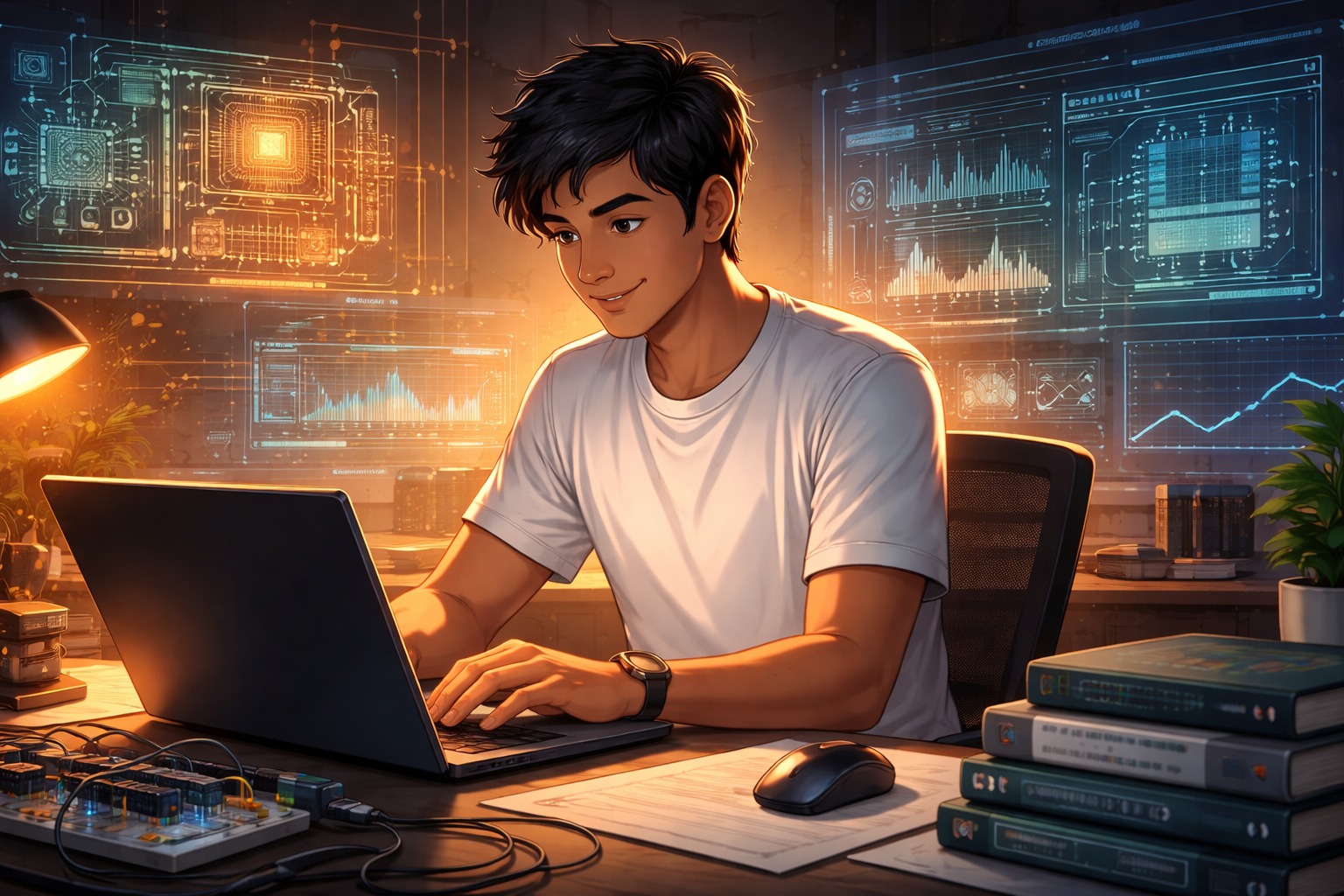 Working with real hardware, building circuits, and testing ideas hands-on gave him a level of clarity that theory alone never could. It made learning feel real.